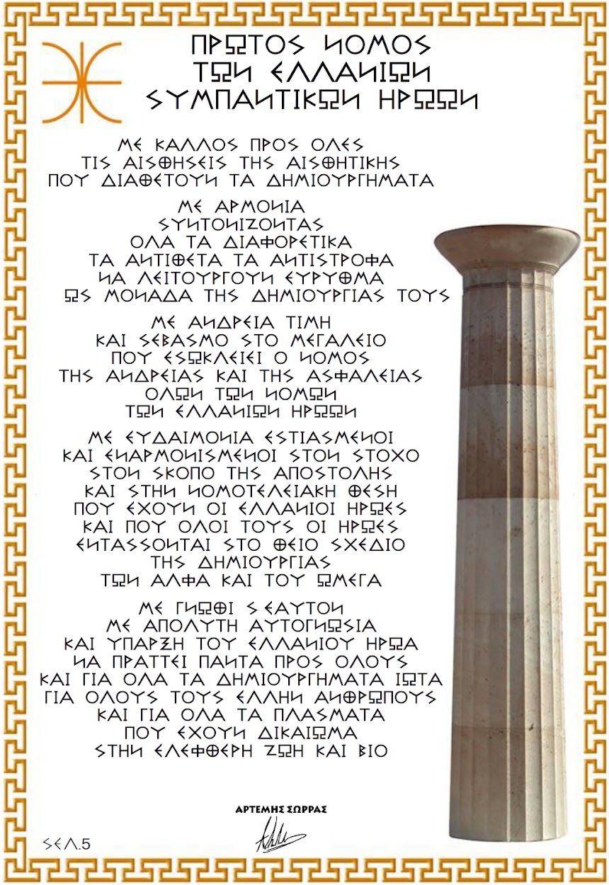 ΠΙΟ ΑΝΑΛΥΤΙΚΑ ΠΑΡΑΚΑΤΩ ΠΑΡΟΥΣΙΑΖΕΤΑΙ ΟΛΟ ΤΟ ΙΕΡΟ ΚΕΙΜΕΝΟ ΤΟΥ ΠΡΩΤΟΥ ΝΟΜΟΥ ΤΩΝ ΕΛΛΑΝΙΩΝ ΗΡΩΩΝ.