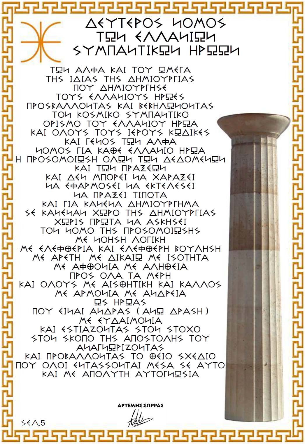 Ο ΔΕΥΤΕΡΟΣ ΝΟΜΟΣ ΤΩΝ ΕΛΛΑΝΙΩΝ ΗΡΩΩΝ, (ΒΛΕΠΕ: https://www.aitherikigrafi.gr/nomoi-ton-iroon-2), ΕΙΝΑΙ: